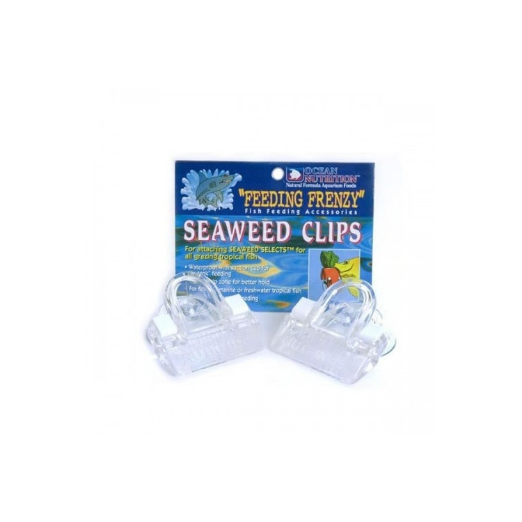 O Feeding Frenzy ™ Seaweed Clip é uma excelente ferramenta para alimentar SEAWEED SELECTS ™, uma macroalga seca, da Ocean Nutrition ™. O clipe é projetado para uso subaquático e tem uma ventosa para fixação na superfície interna do vidro do aquário ou tanque de acrílico. O clipe segura as algas marinhas para os peixes pastarem e ajuda a promover um comportamento alimentar natural.