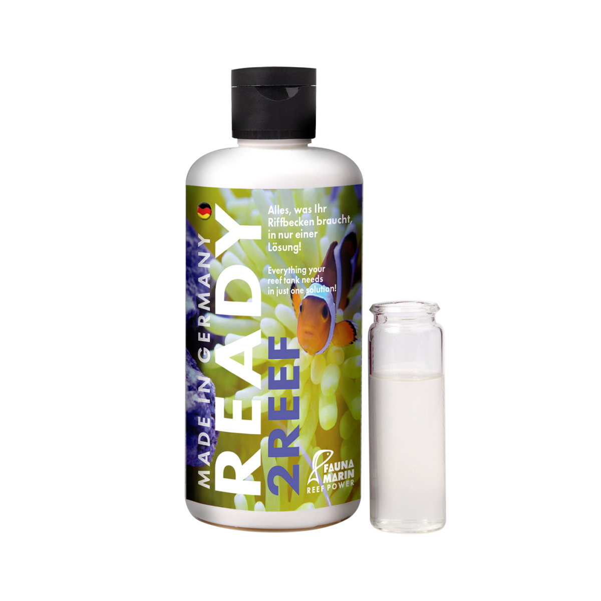 READY 2REEF fornece o tanque de recife com cálcio, magnésio, dureza de carbonato e todos os micro e oligoelementos importantes. O READY2REEF altamente concentrado é especialmente adequado para um bom começo e para a manutenção de aquários de recife com estoque misto. A dosagem é possível manualmente ou com uma bomba de dosagem.