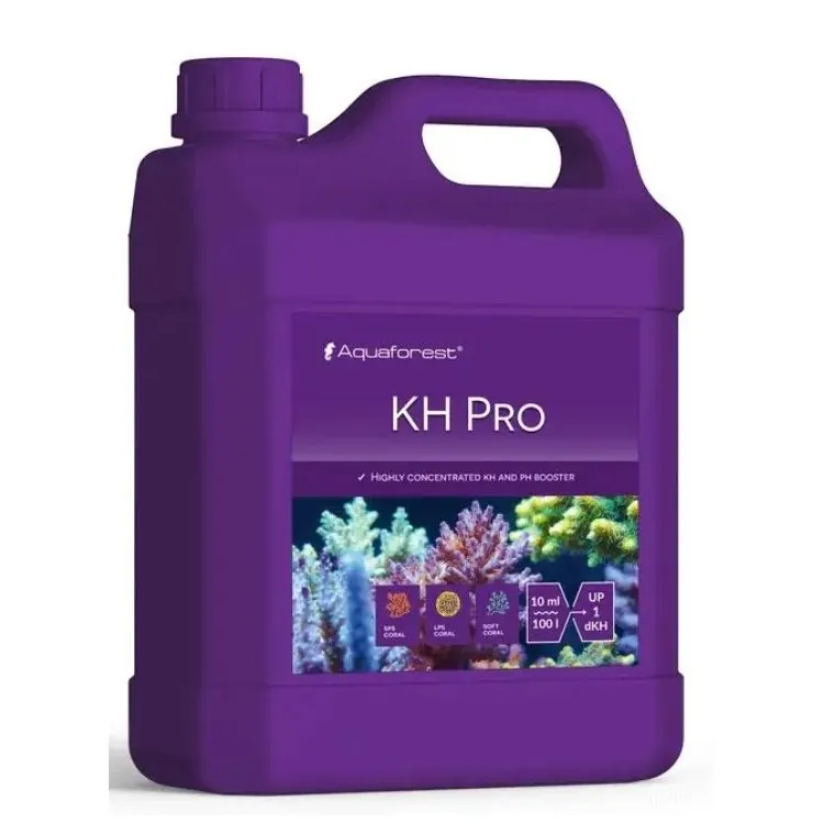 Criámos o KH Pro altamente concentrado para restaurar de forma fácil e eficiente a dureza carbonatada (KH) correta em aquários marinhos, dando-lhe a confiança de que o seu aquário está em excelentes condições. O KH Pro foi desenvolvido como uma versão mais concentrada e eficiente do popular KH Plus Lab. O KH Pro proporciona uma ação ainda mais forte, oferecendo uma melhoria imediata dos parâmetros da água, o que é crucial em situações de emergência, como mudanças repentinas na química da água.