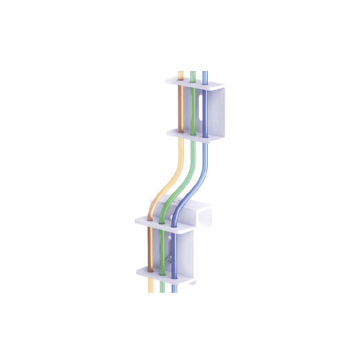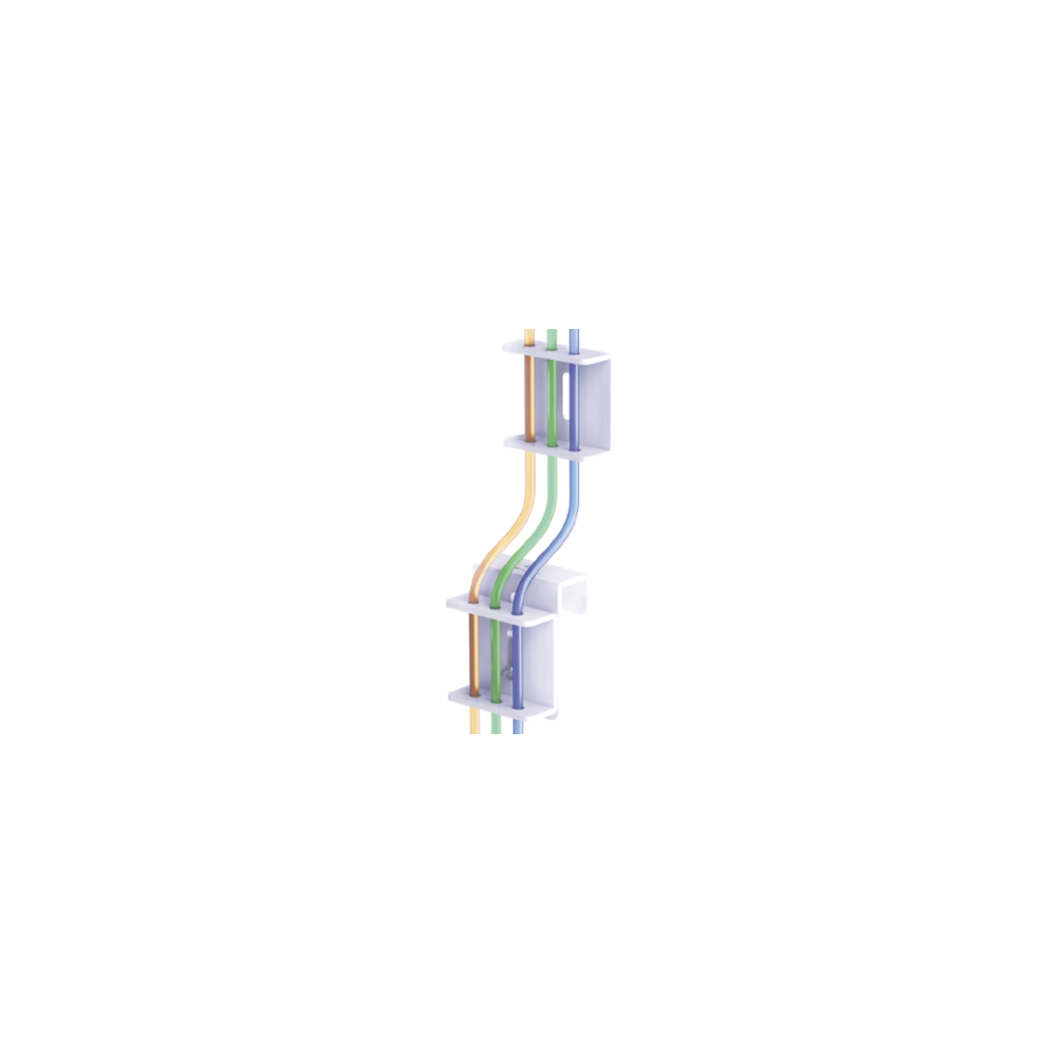 Conjunto completo com tubos coloridos e elementos acrílicos branco, inclui três tubos de 4 metros cada e um conjunto completo de organizadores de acrílico.