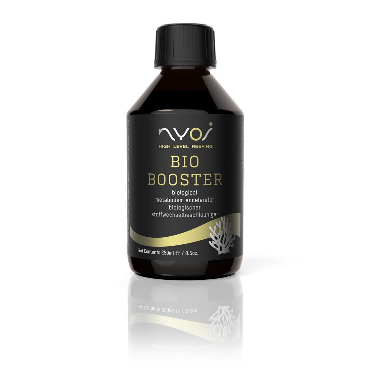 Nyos BioBooster reduz biologicamente nitrito, nitrato e fosfato. Além disso, os corais podem usar a biomassa resultante como partículas de nutrição. Juntamente com as vitaminas e aminoácidos contidos, levam a um forte crescimento e a uma coloração natural do coral.