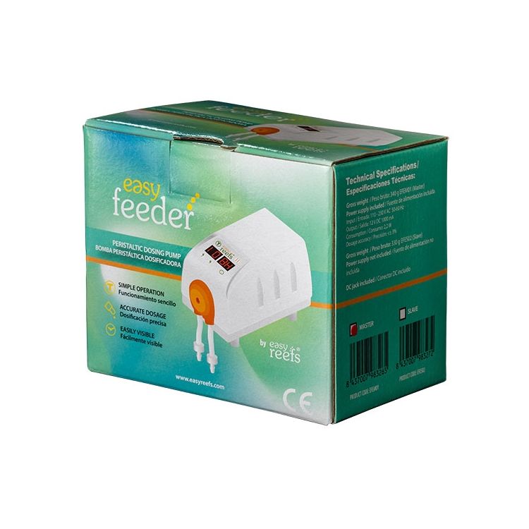 Com o easyFeeder podemos controlar facilmente até quatro canais de dosagem através do seu programador na bomba master ou master easyFeeder e nas suas bombas 1, 2 ou 3 easyFeeder Slave ou slave que podem ser convenientemente ligadas umas às outras por meio de um íman.