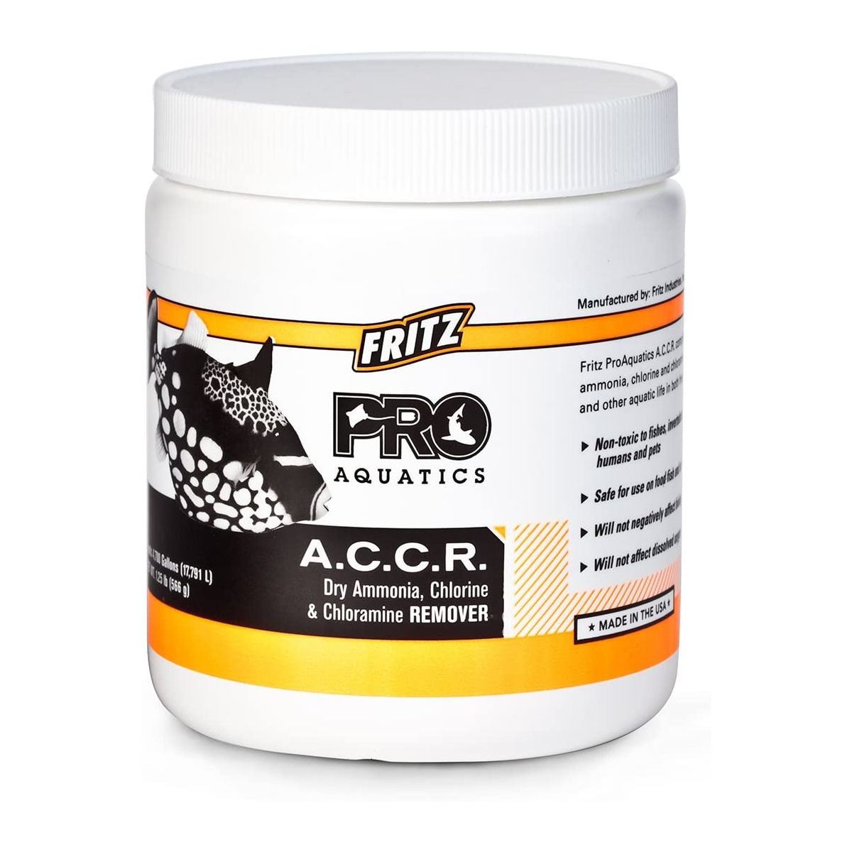 O FritzPro ACCR é um pó exclusivo altamente concentrado que desintoxica de forma completa, instantânea e segura a amônia, o cloro e a cloramina de água doce e salgada. O FritzPro ACCR não é tóxico e pode ser usado com segurança em todos os tipos de peixes e culturas de invertebrados aquáticos. FritzPro ACCR não altera o pH nem diminui os níveis de oxigênio. O FritzPro ACCR é extremamente seguro, mesmo em caso de overdose.