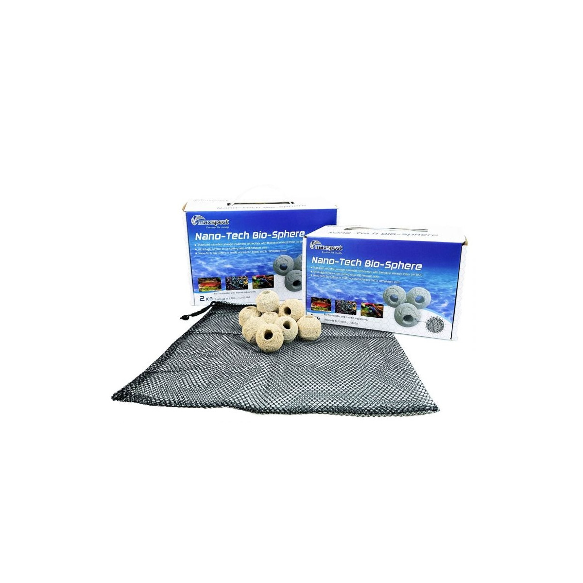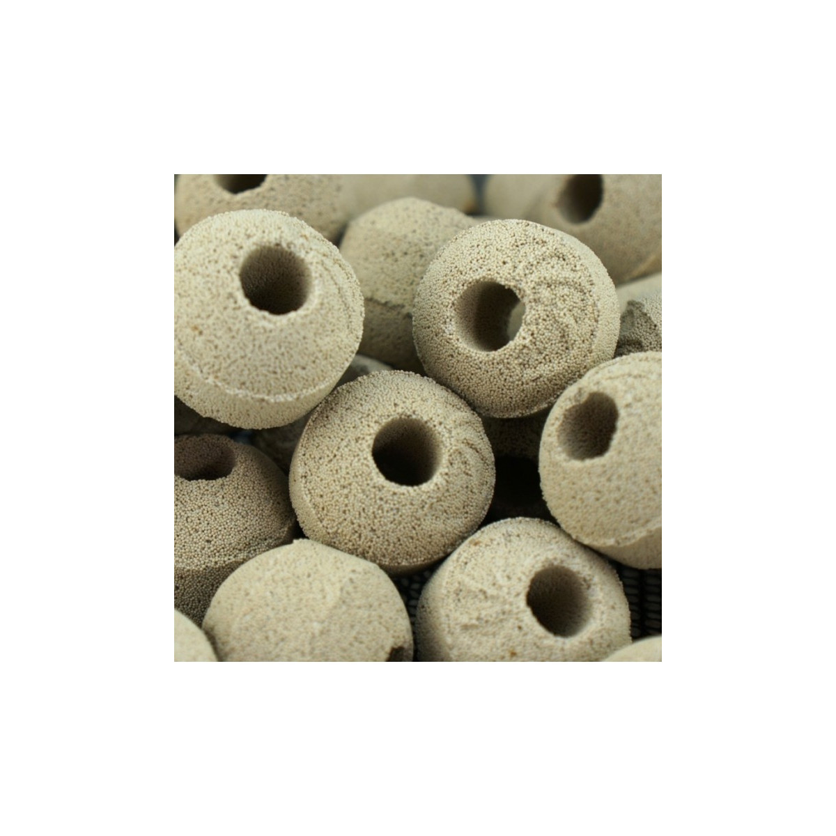 Material altamente poroso à base de esferas cerâmicas totalmente inertes, cada esfera equivale a 1 kg. de rocha viva. É usado para água doce e salgada. Inclui rede de colocação.