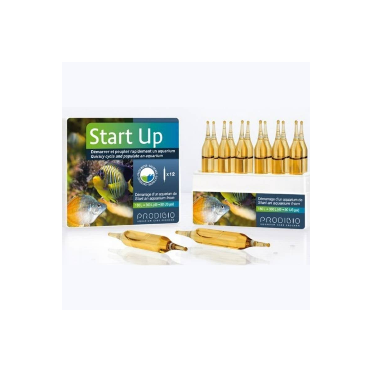 O Start_Up reúne o BioDigest_Start e o Stop_Ammo_Start, permitindo que você inicialize rapidamente e preencha um tanque de água doce ou marinha. Ampolas 12.