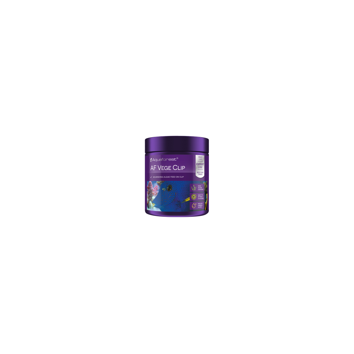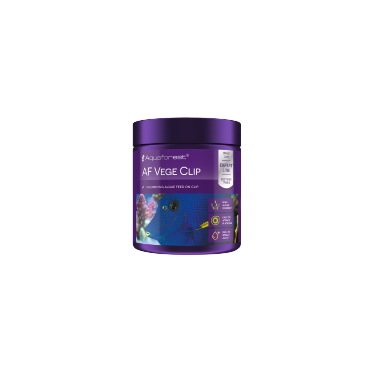 Alimento nutritivo destinado a peixes herbívoros. Para garantir o desenvolvimento adequado, o clipe AF Vege resistente a doenças foi feito a partir de 7 variedades de algas e fitoplâncton ricas em vitaminas, minerais, fazendo uma dieta completa e equilibrada para todos os tipos de peixes. A comida é colocada no clipe, que pode ser pendurado em qualquer lugar do aquário, dando liberdade ao peixe para nadar e comer. A aplicação deste produto é apenas para aquários. Não é adequado para consumo humano. Mantenha fora do alcance de crianças.