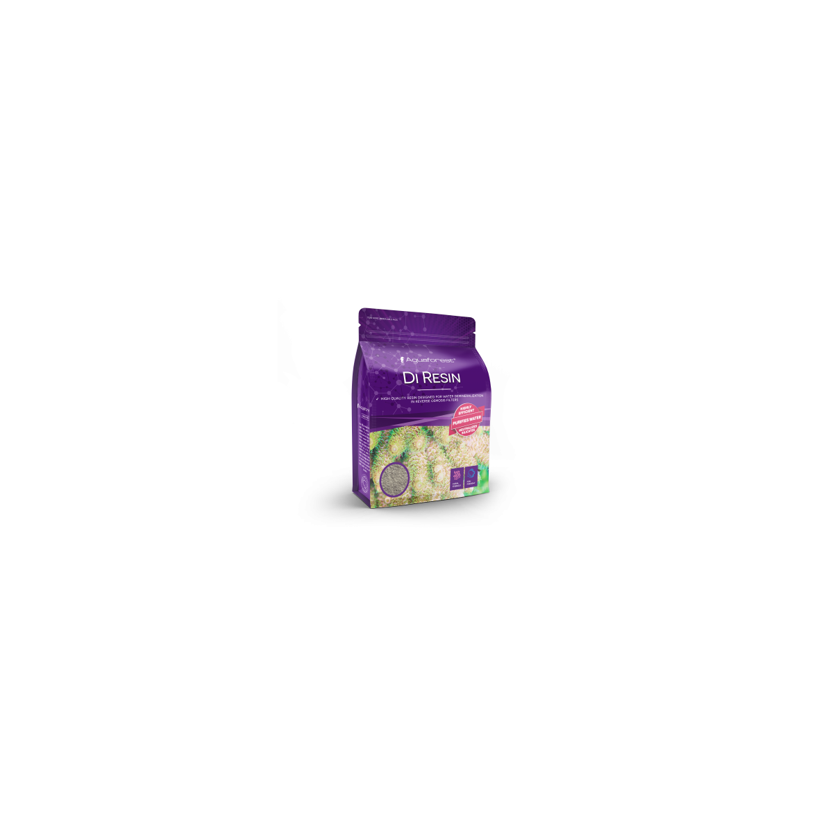 Resina de alta qualidade destinada à desmineralização de água utilizada em filtros de osmose reversa e principalmente como última etapa de filtração de água corrente da torneira.