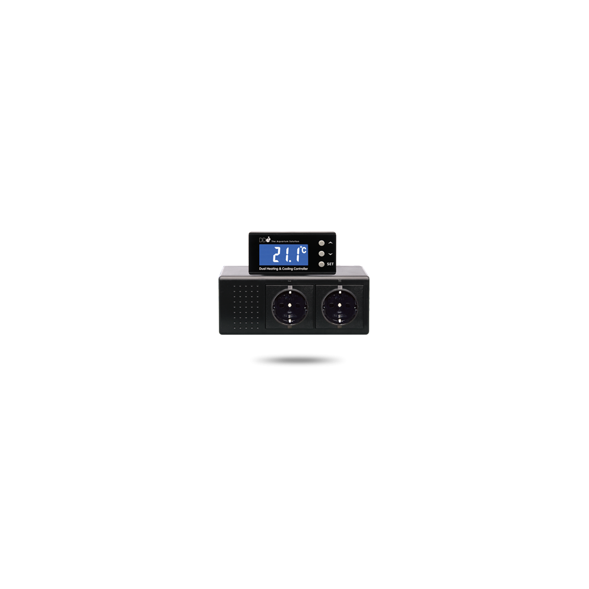 Controlador digital de temperatura DUAL, permite o controle de temperatura de um aquário, tem dois plugues, tem alarmes máximos e mínimos. Precisão +/- 1º.