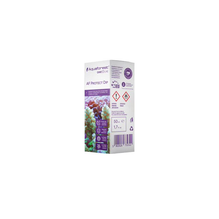 Solução profilática para banho de corais. Limpa completamente a superfície dos corais. Reduz o risco de desenvolver muitas doenças, como necrose tecidual, branqueamento de corais, micose, AEFW, síndrome de Jelly Brown, etc. A preparação é perfeita antes da introdução de novos corais no aquário ou na sua quarentena. O processo de banho garante-lhes uma aparência saudável e um bom crescimento e desenvolvimento. Além disso, o produto é seguro, não contém iodo ou compostos oxidantes.
