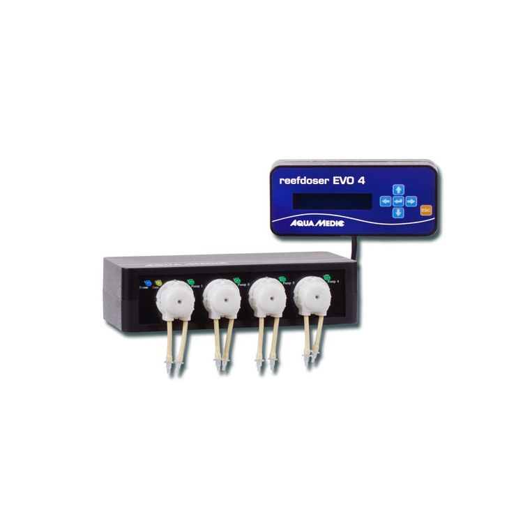Com o reefdoser Aqua Medic EVO 4 , as quatro bombas de dosagem integradas podem ser controladas independentemente umas das outras. A dosagem é feita manualmente ou automaticamente, todas as bombas podem ser calibradas individualmente. O controle de intervalo permite uma ampla gama de configurações - de um segundo a um ciclo diário. O reefdoser EVO 4 pode assumir uma variedade de tarefas: