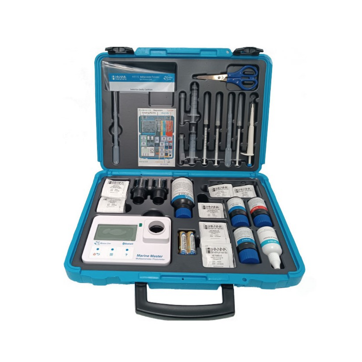O HI97115 é um fotômetro marinho multiparâmetro compacto e versátil projetado para determinar com precisão os níveis de pH, alcalinidade, amônia, cálcio, magnésio, nitrato, nitrito e fosfato em aplicações de aquário e biologia marinha.