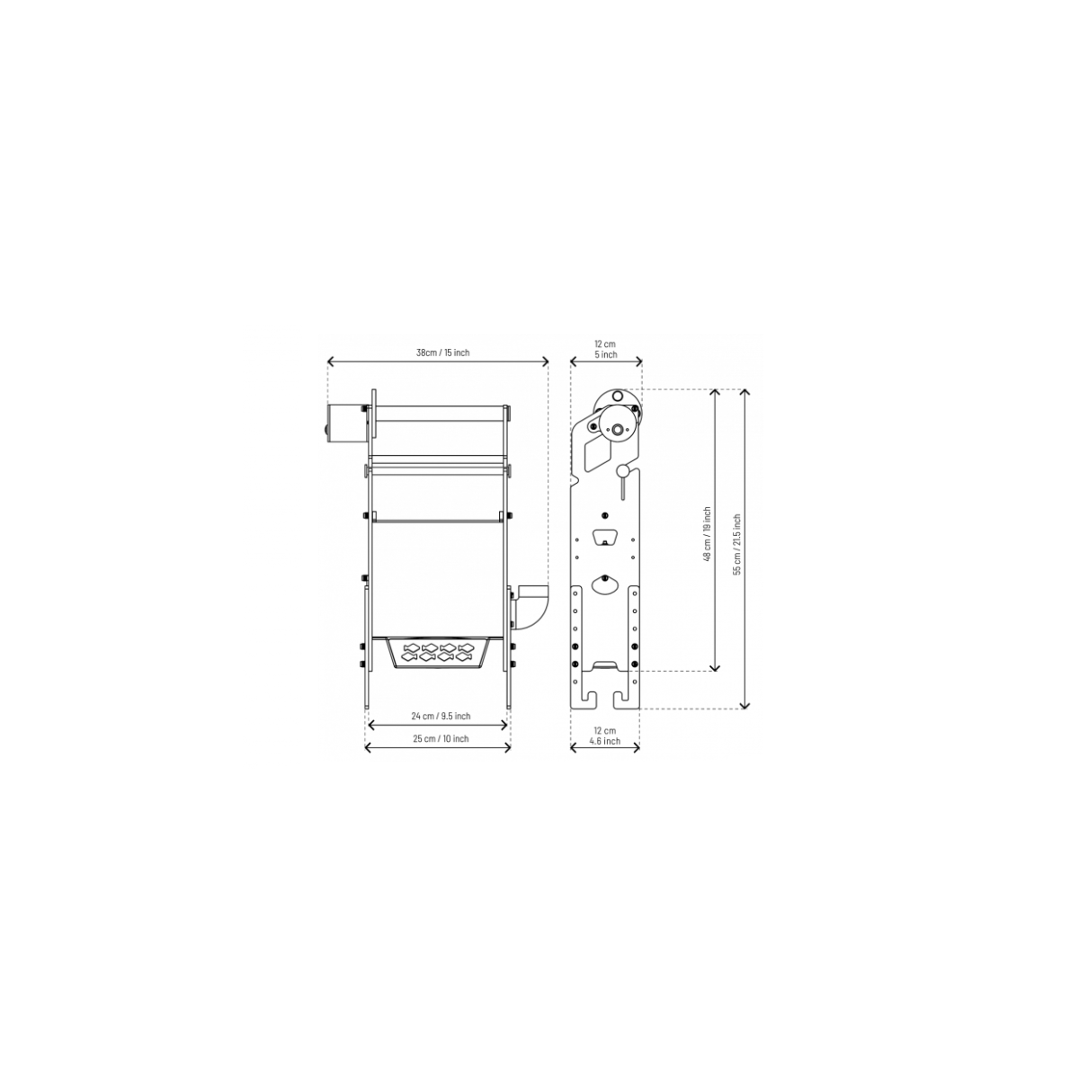 - Pernas reguláveis em altura e possibilidade de pendurar.