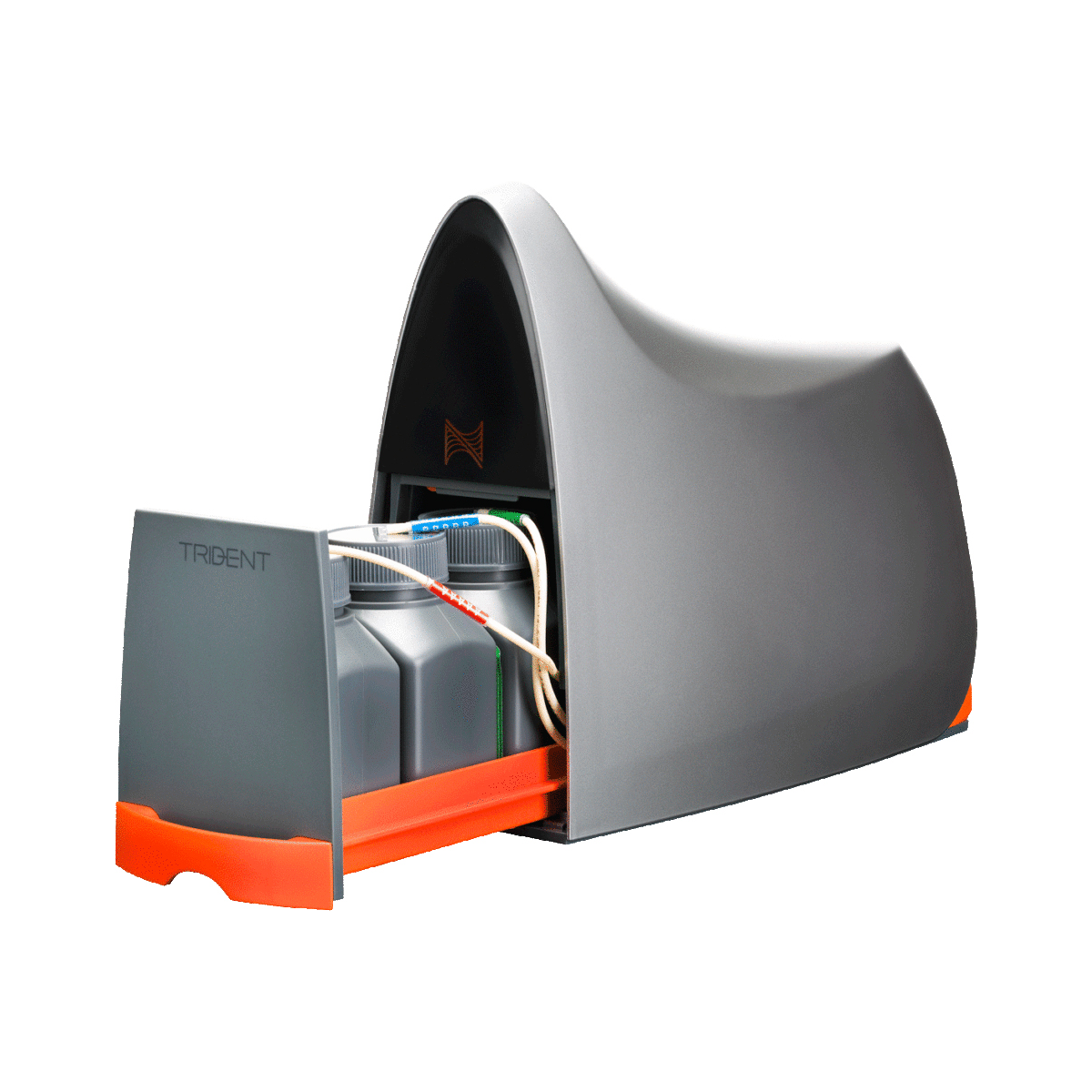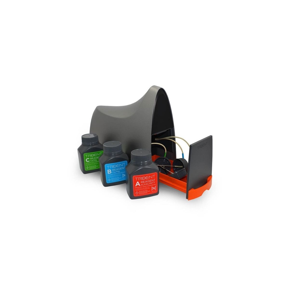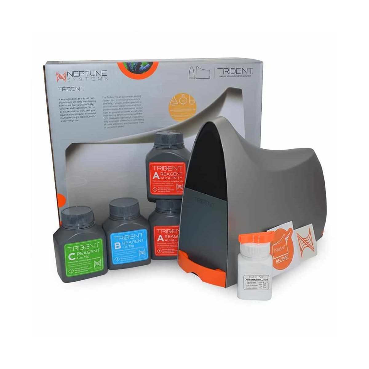 The Trident is an automated testing system that regularly tests alkalinity, calcium, and magnesium in your saltwater aquarium — and then communicates this information to your Apex so you can get alerts, and change your dosing. When combined with the DOS (available separately) it creates a fully automated system for the proper dosing of supplements, maintaining them at consistent levels.
