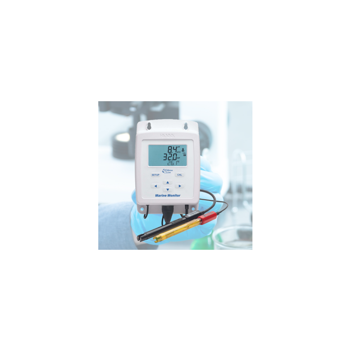 Fácil de usar, alarmes altos/baixos podem ser configurados, salinidade pode ser exibida em ppt, PSU ou SG, display LCD grande, fácil de ler, sondas altamente precisas.