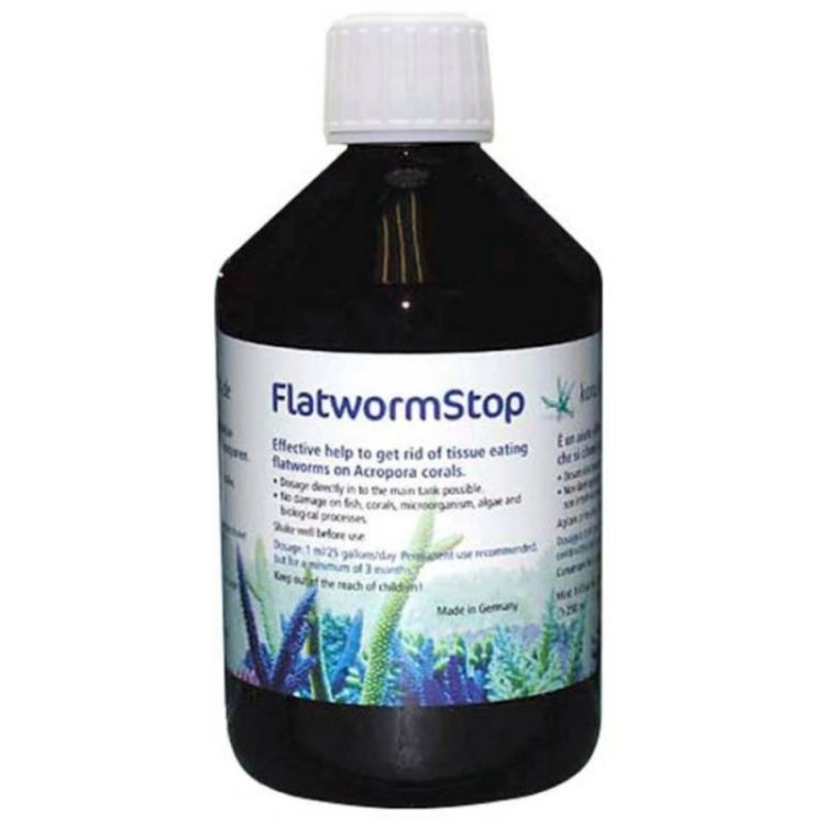- FlatwormStop também pode beneficiar a saúde dos corais sem infestação de flatworms. A rápida regeneração de danos mecânicos, bem como a rápida regeneração de incrustações, são alguns dos efeitos positivos que podem ser observados num curto espaço de tempo após a utilização deste produto.