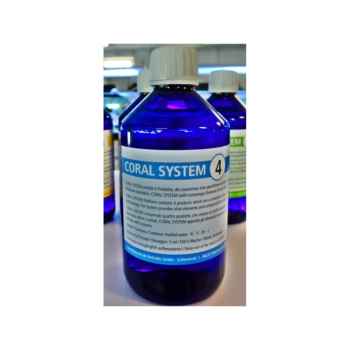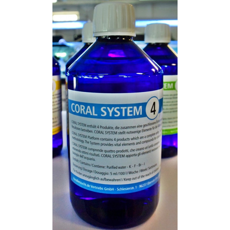 Coral System adiciona os elementos mais importantes e necessários para melhorar a coloração, a saúde e a biologia dos corais. Não contém cálcio, carbonato, magnésio, estes valores principais devem ser medidos regularmente e opcionalmente adicionados separadamente.