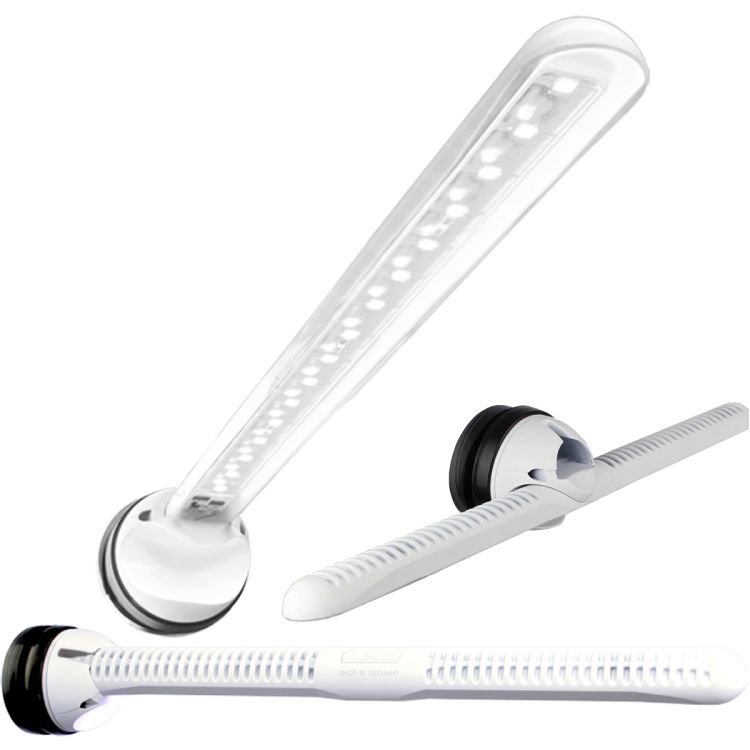 Consumo total de aprox. 10 W. A TUNZE® LED white eco chic 8821 pode ser utilizada ao ar ou debaixo d'água.Fonte de alimentação 100-240V/50-60Hz, inclusive Magnet Holder até espessura de vidro de 10 mm.