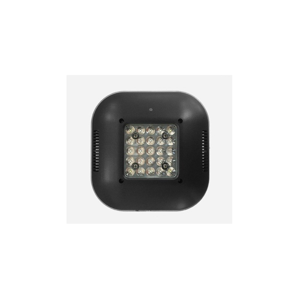Funciona a 24V, dimensões: 184x184x34 mm.