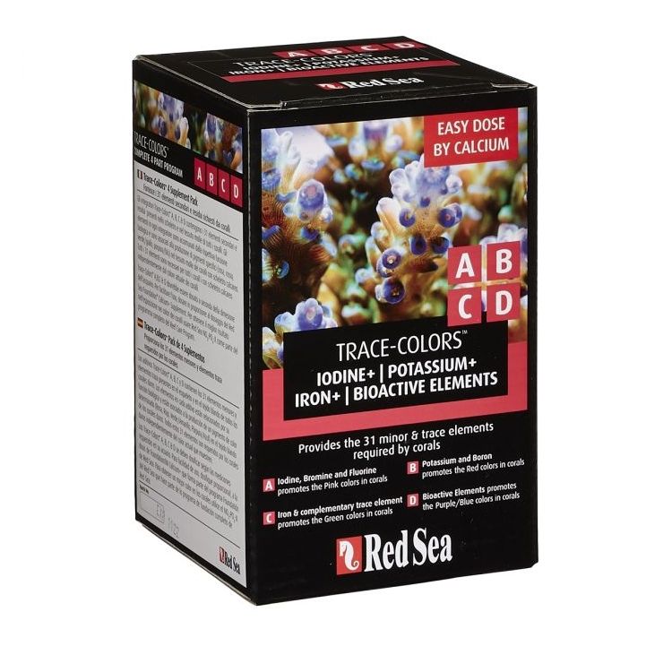 Os suplementos Trace Colors A|B|C|D contêm os 31 elementos menores e oligoelementos presentes no esqueleto e tecidos moles de todos os corais.
