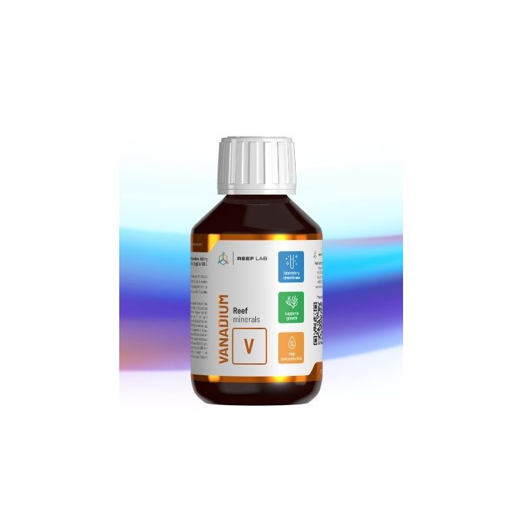 A composição química do Vanadium Reef Minerals foi concebida para repor as carências de vanádio e as quedas súbitas na água do mar. A sua utilização é segura e permite um aumento rápido e eficaz dos níveis de vanádio no aquário marinho até ao seu valor ideal.