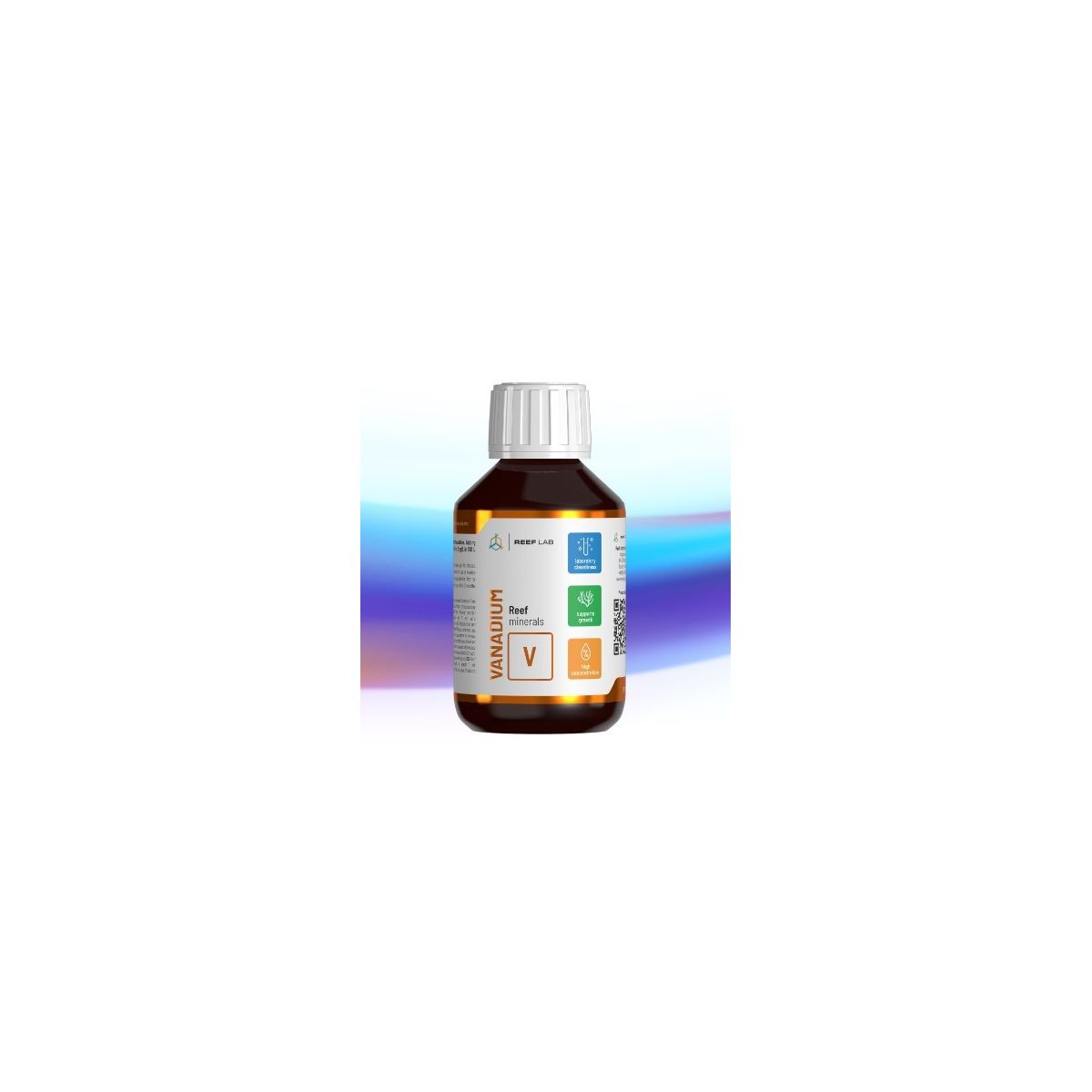 Dosagem: A adição de 1 ml de Vanadium Reef Minerals aumenta o nível de vanádio (V) em 2 µg/L num aquário marinho de 100 L.