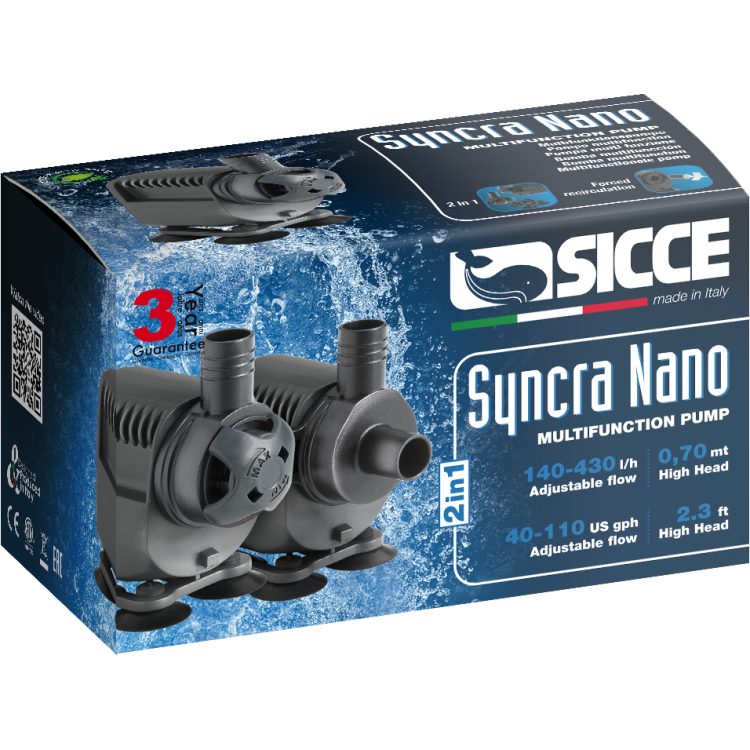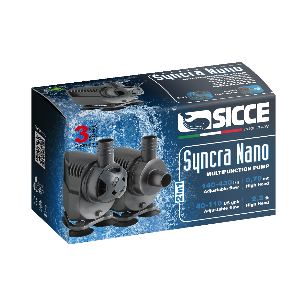 SYNCRA NANO incorpora todas as características da linha SYNCRA e é a menor bomba e compacta no mercado. A única que pode ser utilizada submersa e em linha, graças a uma pré-câmara intercambiável que a torna adequada para várias utilizações, em água doce e salgada.