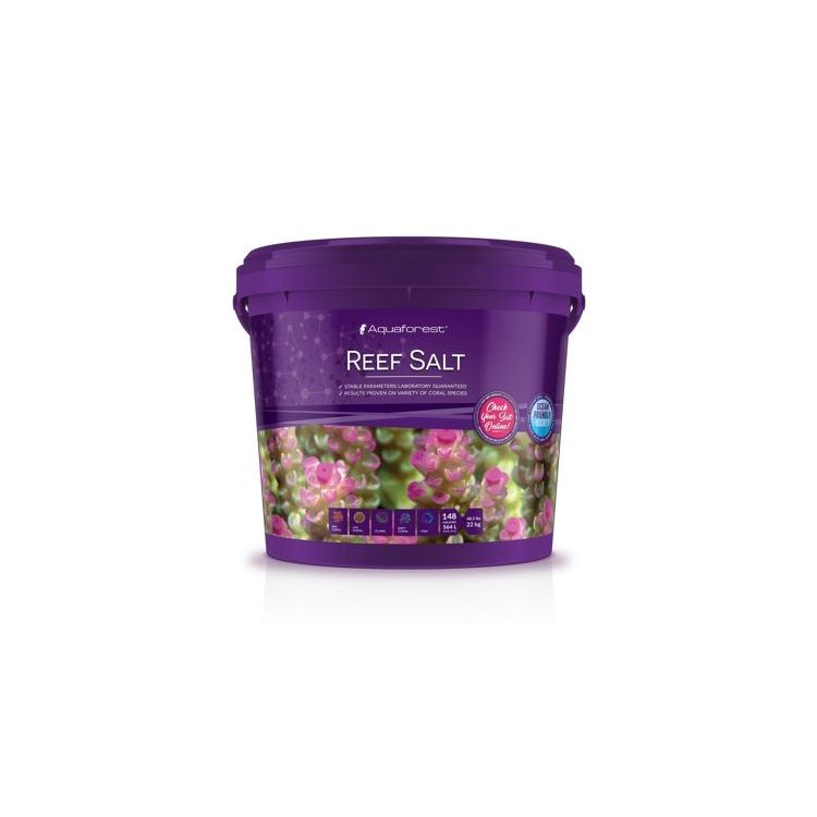Fully synthetic marine salt created for aquacultured corals. This formula is designed to create the best conditions for marine animals. The micro-nutrients and macro-nutrients in Aquaforest Reef Salt fulfill corals’ demand for proper growth and pigmentation. After dissolving the salt, your freshly prepared marine water can be used immediately. The salt mix is enriched with amino acids and Vitamin C. The addition of Vitamin C encourages growth and has positive effects on the overall health of all aquarium inhabitants.