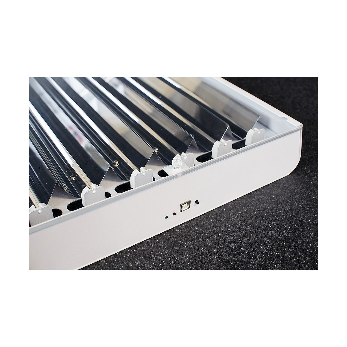 - O resfriamento ultra eficiente por meio dos ventiladores embutidos de baixa velocidade de 120 mm mantêm os reatores e tubos funcionando com desempenho ideal.