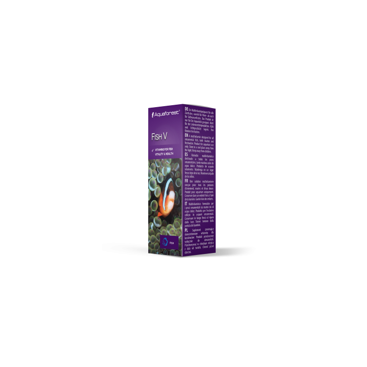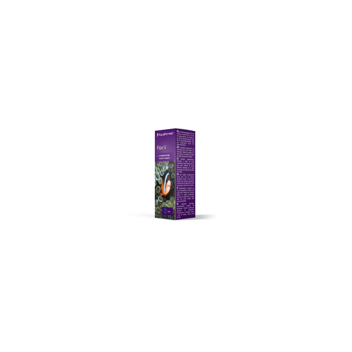 Complexo vitamínico para peixes, contem vitaminas A, B1, B2, B6, B12, C, D3, E, K3 y biotina, alanina, colina, cisteina, glutamina, leucina, lisina, etc.
